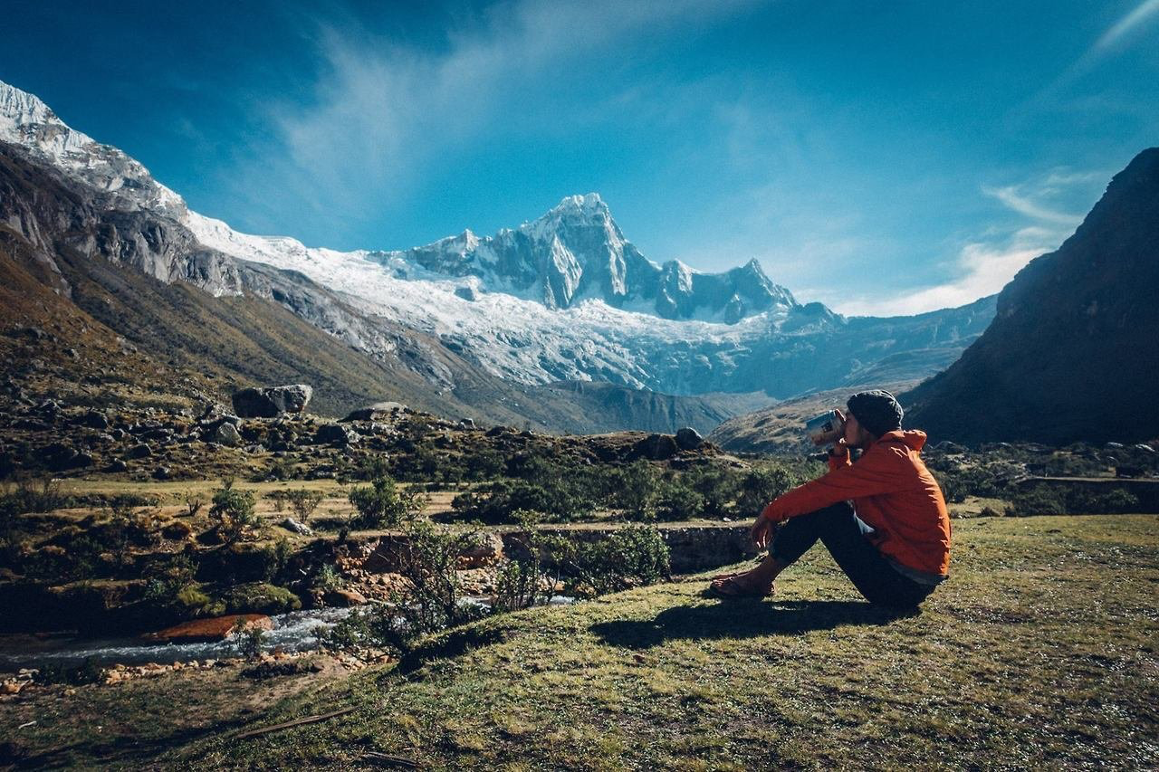 Утренний кофе в перуанских Андах после трехдневного похода в Санта-Крус в Уарасе, Перу.