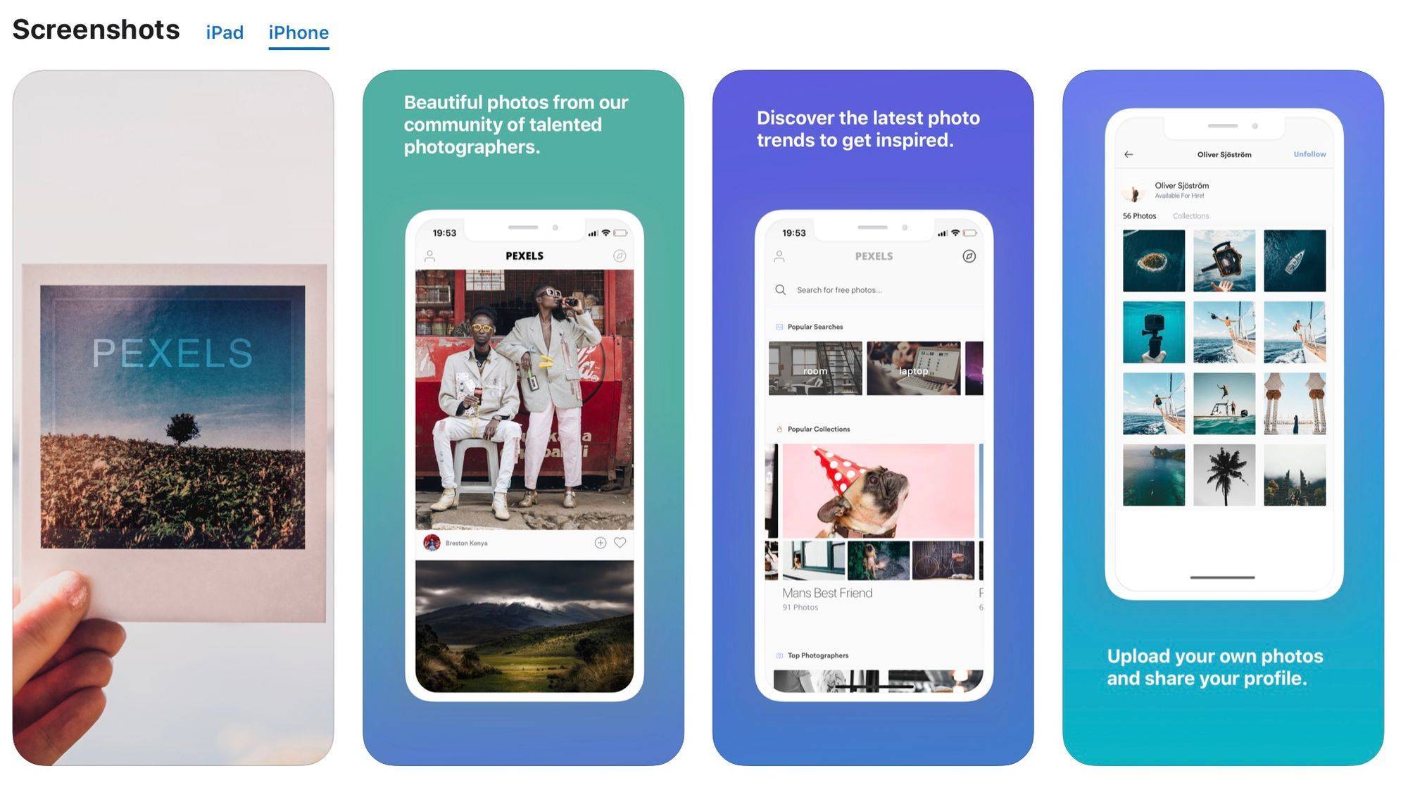 Мобильное приложения Pexels для фотостока