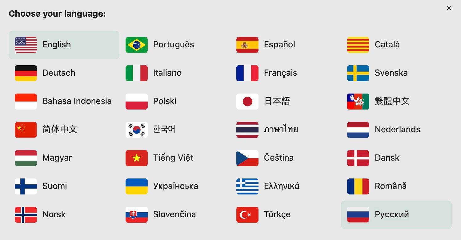 Платформа поддерживает множество языков, включая русский.
