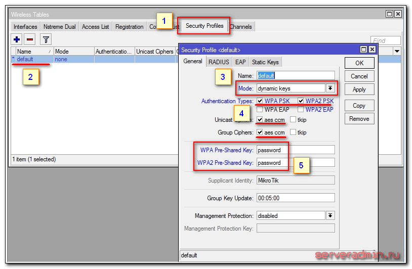 Настраиваем параметры Wi-Fi точки MikroTik: