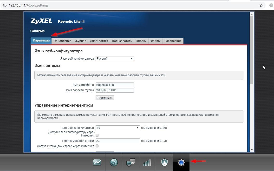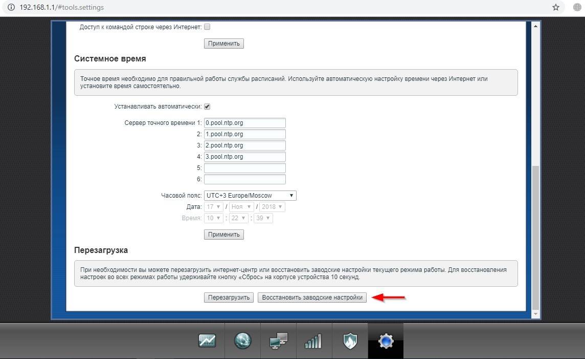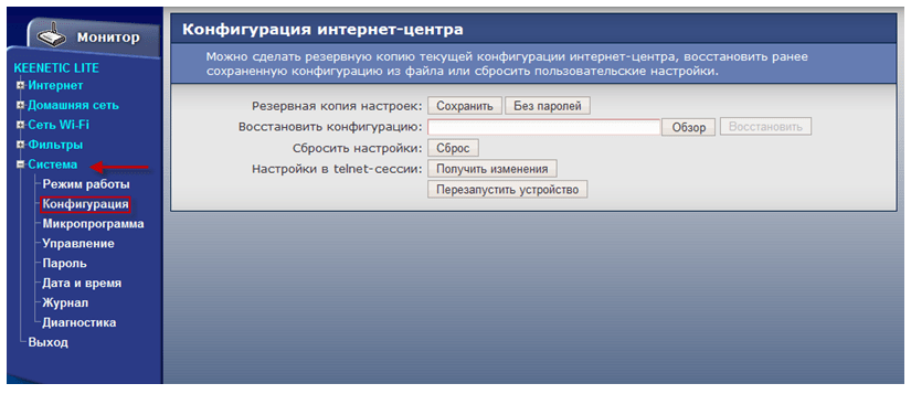 Сброс настроек через web-интерфейс выполняется следующим образом (на примере ZyXEL Keenetic Lite III):