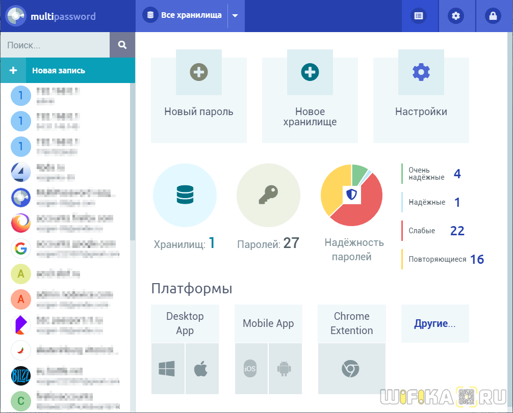 Гораздо большими преимуществами по части безопасности обладают специализированные парольные менеджеры. Хорошим примером тут может послужить система хранения паролей MultiPassword. Состоит она из двух основных частей — защищенного облачного хранилища и конечного пользовательского ПО, куда относится настольное (десктопное) приложение и расширение для браузера.