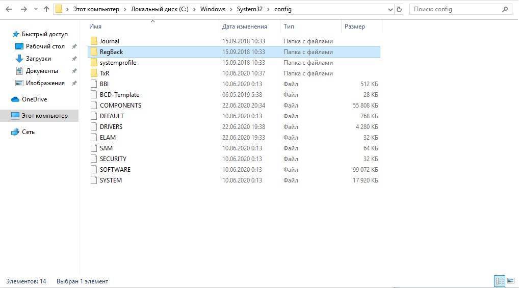 Важно! К файлам нужно обращаться только при уверенности, что на дату их формирования с реестром все было в порядке и при достаточном знании работы системы. Хранится копия в системной папке RegBack