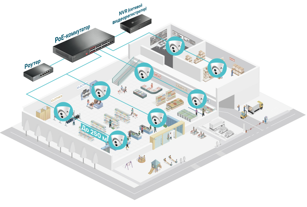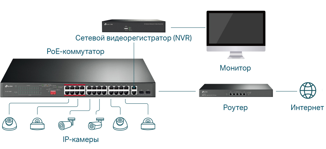 Коммутаторы TP-Link для видеонаблюдения с поддержкой PoE соответствуют требованиям большинства современных IP-камер. Многие их функции выходят за рамки базовых (расширенный режим, режим приоритета, режим изоляции), позволяя создать гибкую и надёжную сеть для растущего бизнеса. Постройте сеть и управляйте камерами и сетевыми видеорегистраторами (NVR) с помощью PoE-коммутатора.