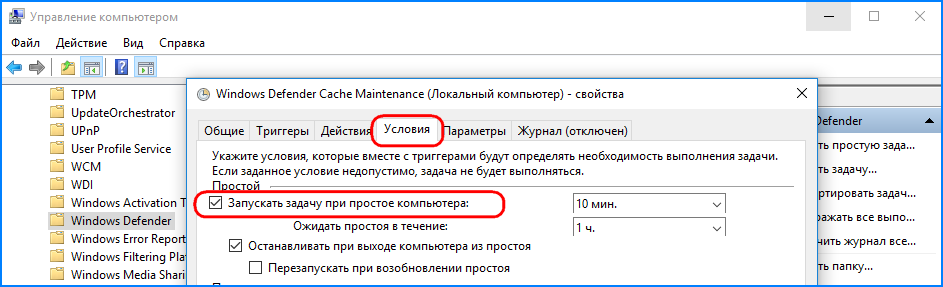 Но это лишь один из вариантов решения проблемы. Запуск запланированных проверок можно назначить на другое время, ограничить их периодом простоя компьютера или понизить приоритет процесса. Рассмотрим эти варианты чуть более подробно.