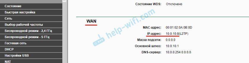 Нужно для начала зайти в настройки своего Wi-Fi роутера, и прямо на главной странице (обычно, это»Карта сети», или «Состояние») , или в разделе WAN (Интернет) посмотреть WAN IP-адрес, который присвоен роутеру интернет-провайдером. Вот, например, на роутере TP-Link: