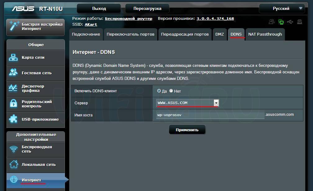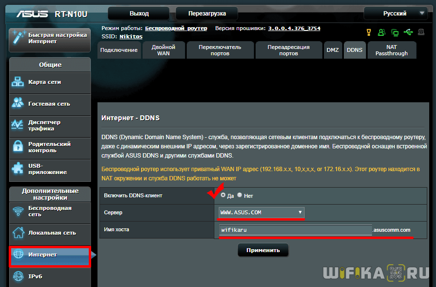 Регистрация DDNS на роутере Asus