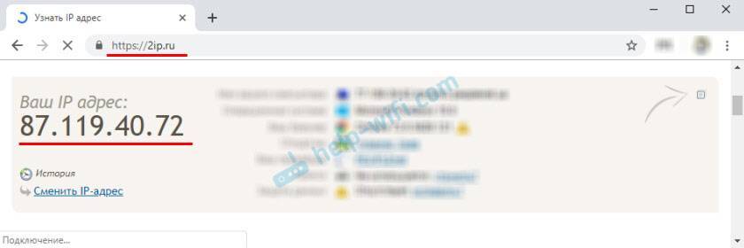 Дальше нам нужно зайти на любой сайт, на котором можно посмотреть свой внешний IP-адрес. Например, на https://2ip.ru/