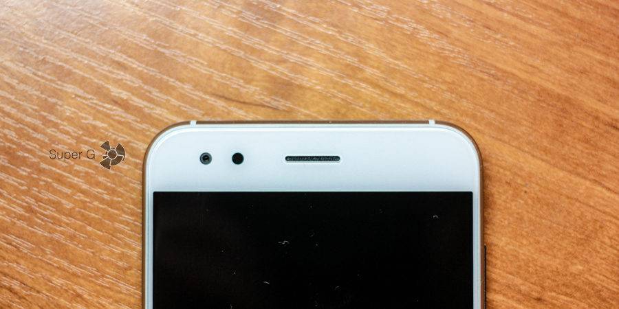 Спереди сначала создаётся впечатление, что в смартфоне стоит двойная фронтальная камера. Но всё стандартно: фронталка, датчик освещённости и динамик (стереозвук, разговорный динамик так же используется для воспроизведения звука, как в Huawei P10 Plus или айфонах). Индикатор оповещений встроен прям в динамик.