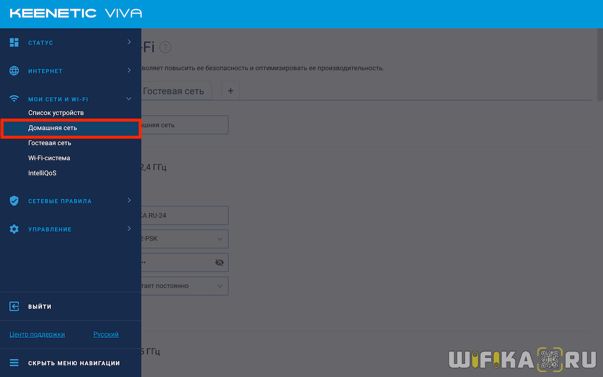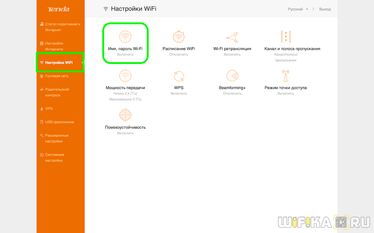 В панели управления данная функция вызывается в разделе «Настройки WiFi»