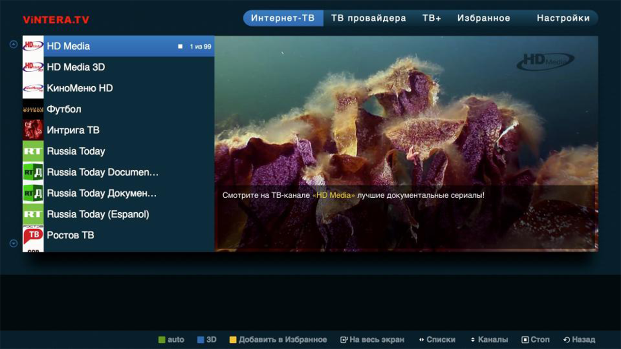 - Возможность добавлять в папку «Избранное» любимые каналы для получения быстрого доступа к ним.