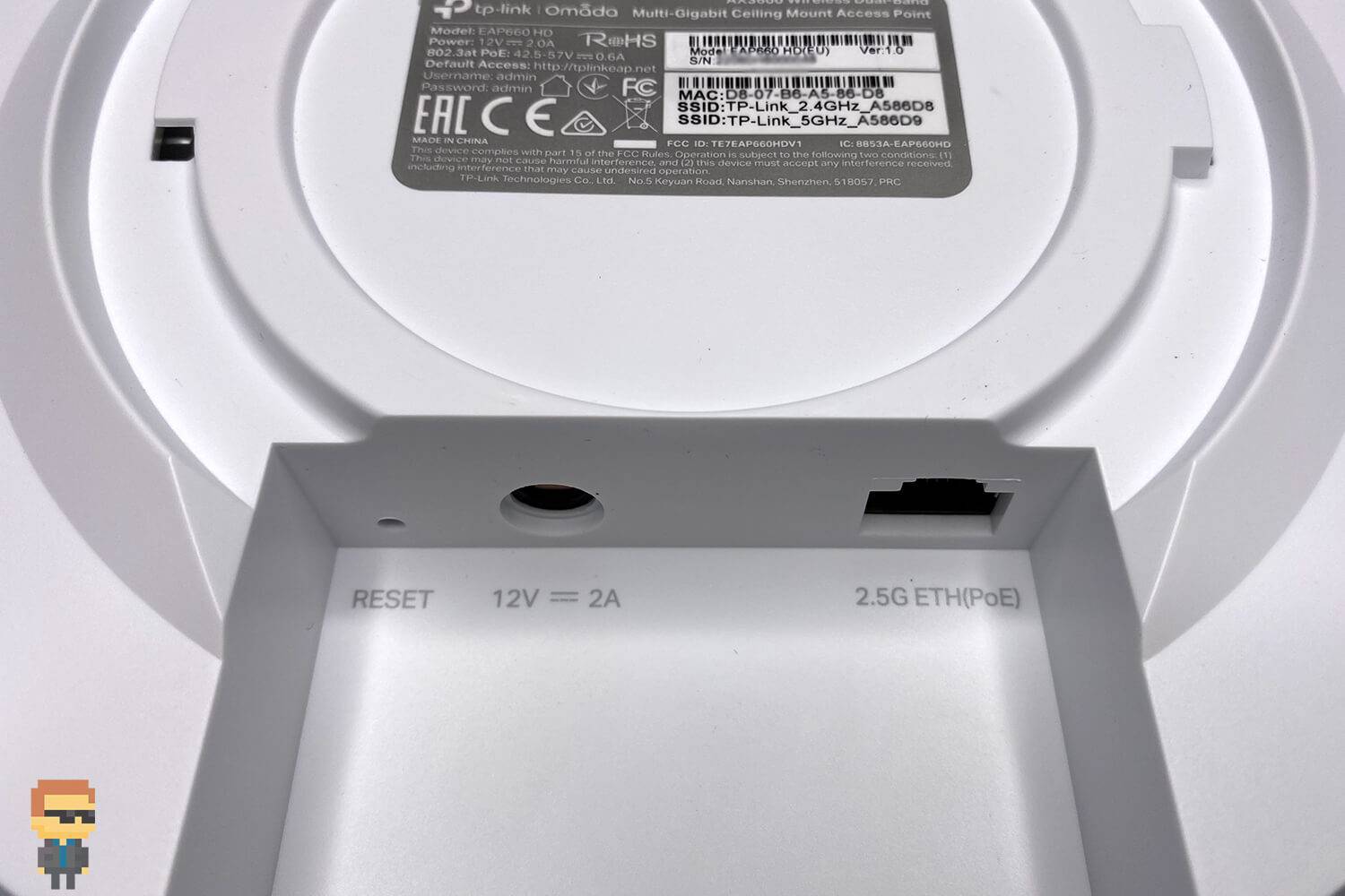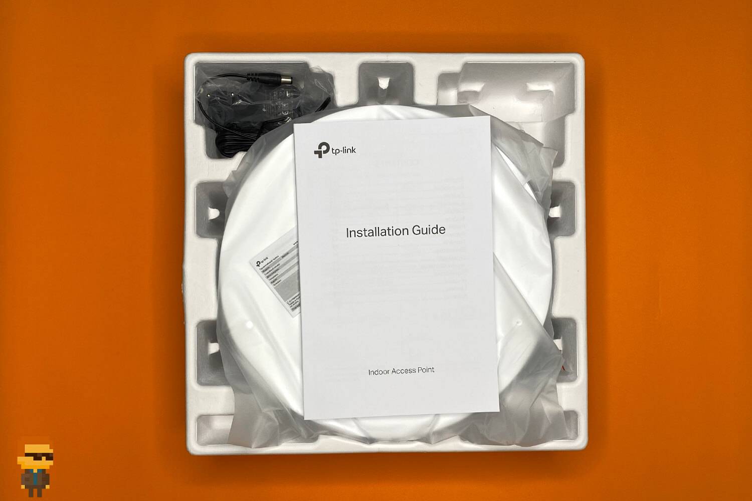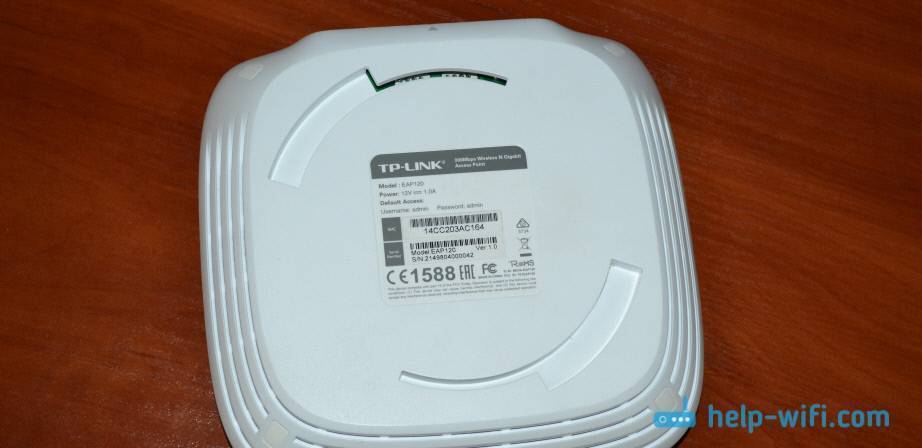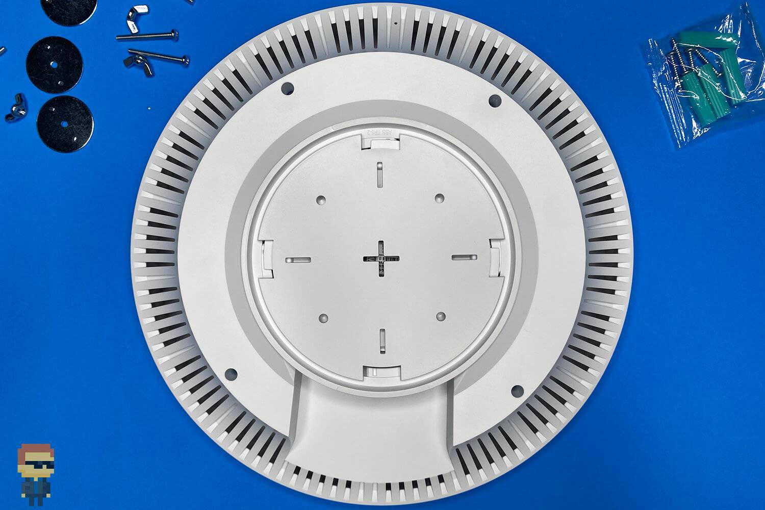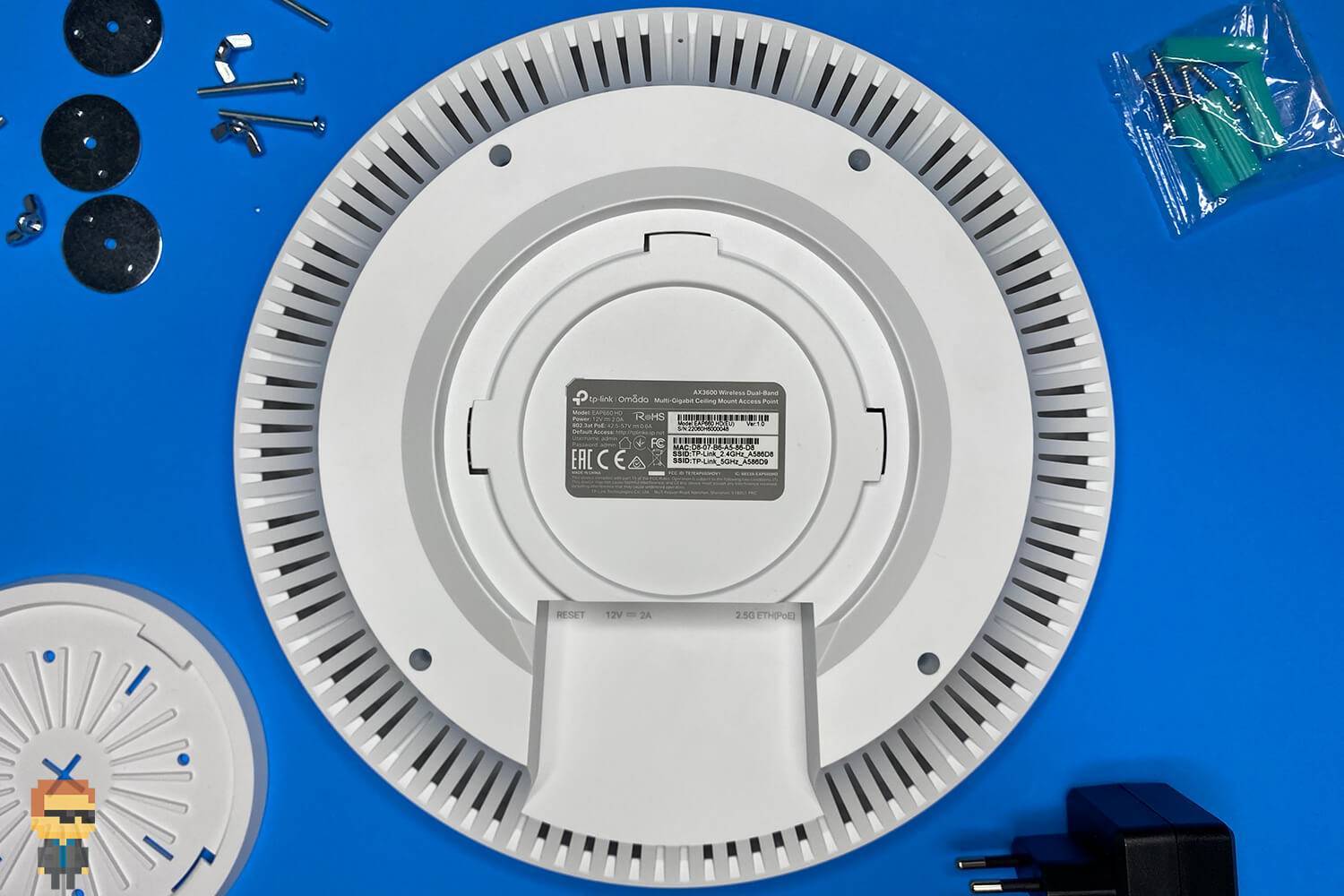 Снизу есть отверстия под это крепление, и наклейка с необходимой заводской информацией по точке доступа.