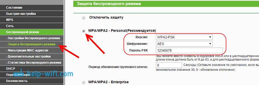 - Ключ шифрования PSK: придумать свой надежный пароль.