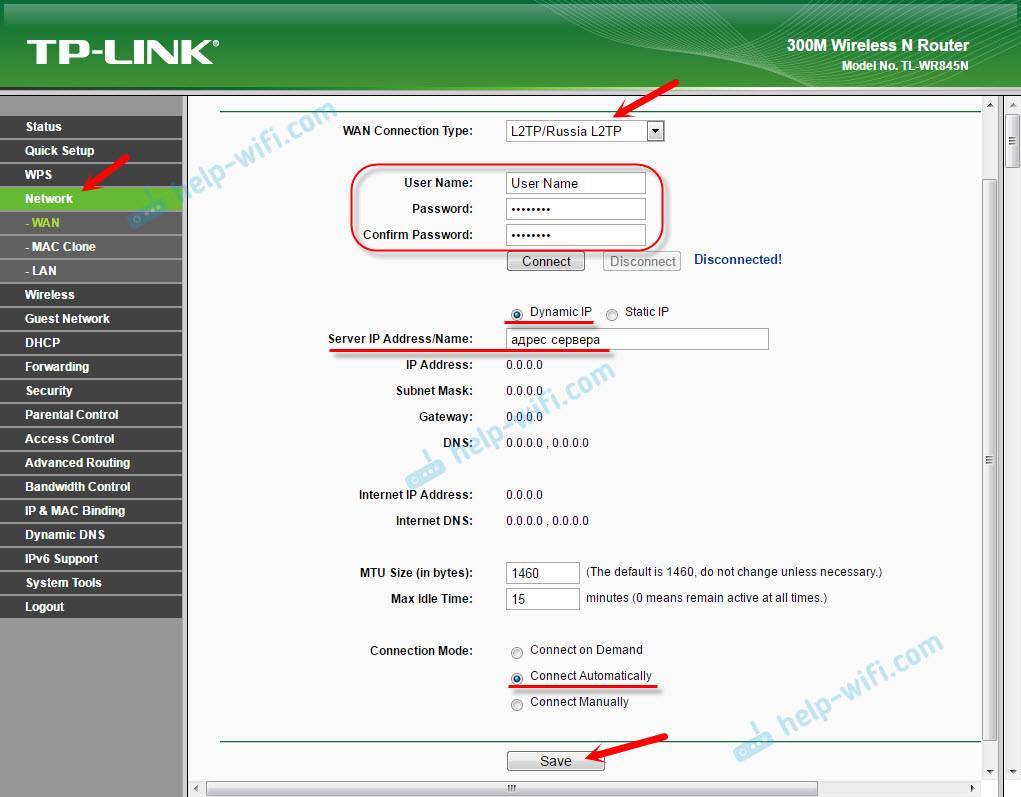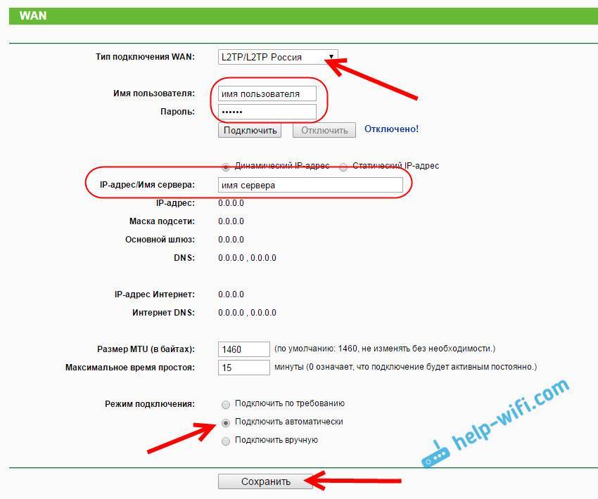 Пример настройки L2TP, или PPTP (например, провайдер Биллайн):