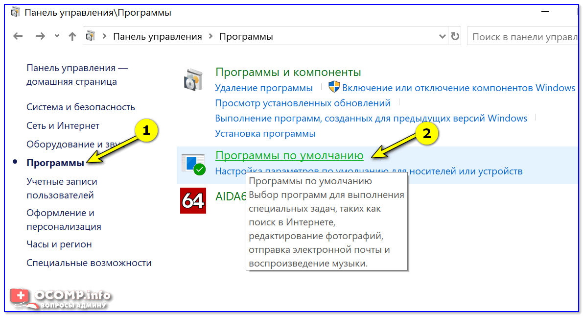 2) После, нужно перейти в раздел «Программы / программы по умолчанию» .