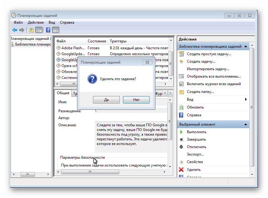 Теперь, после того как вы благополучно отыскали нарушающие ваш покой вирусные задания, от них нужно каким-то образом избавляться. Их можно удалить, но лучше всего будет просто отключить, ведь у вас не получится располагать полной уверенностью, что это именно те вредоносные процессы.