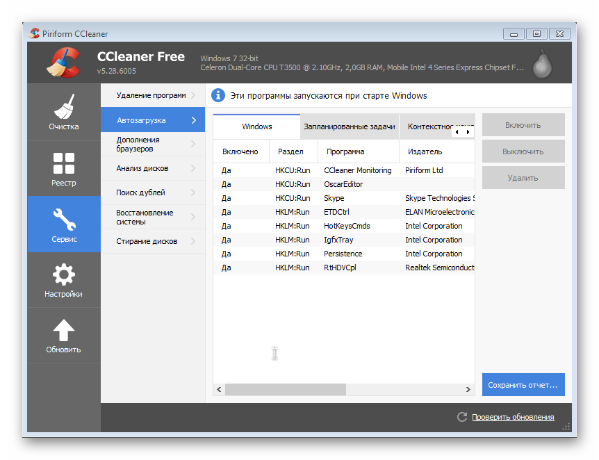 Перейдите во вкладку «Сервис», а после – «Автозагрузка».