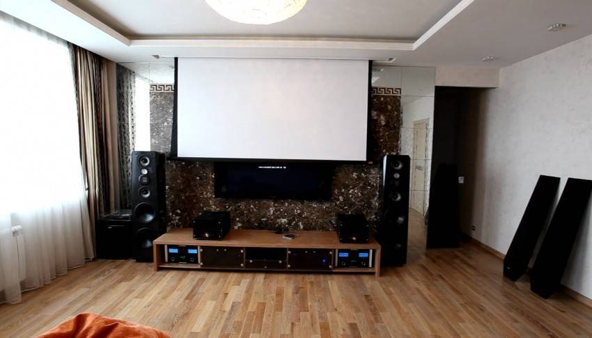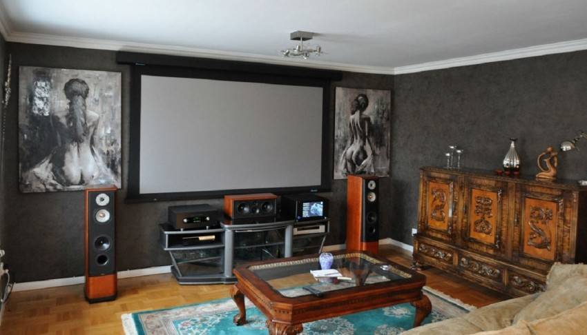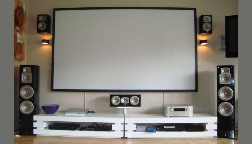 Мониторы, динамики, плеер и ресивер – четыре обязательных компонента кинотеатра. Видеоблок может состоять также и из проектора с экраном.