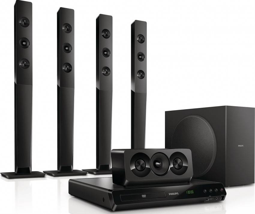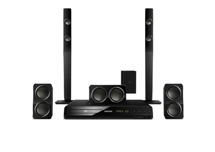 Отличительная особенность этой акустической системы 5.1 в том, что колонки скомбинированы попарно и выглядят, как два довольно крупных и небольших блока. В плане объемного звучания пользователи считают это решение очень удачным. За счет такого расположения домашний кинотеатр не займет много места и подойдет для средней и большой квартиры. За качество звука отвечают 2 встроенные фронтальные колонки по 130 Вт, 2 динамика и 1 тыльное устройство аналогичной мощности. Сабвуфер отлично передают низкие частоты, а плеер способен воспроизводить видео в формате FullHD, в том числе и с эффектом 3D.