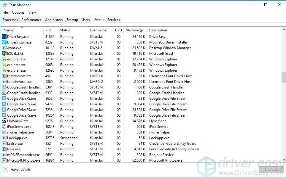 - Перейдите на вкладку « Сведения » (или на вкладку « Процессы », если вы используете Windows 7).