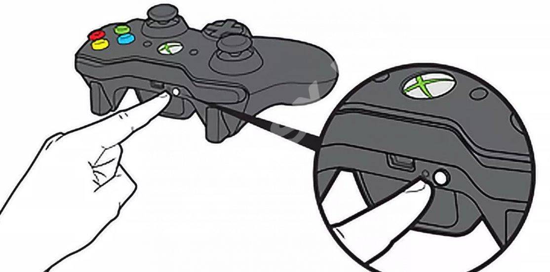 Для этого воспользуйтесь кнопкой перезагрузки: возьмите тонкий длинный предмет (подойдет инструмент для извлечения сим-карты или разогнутая канцелярская скрепка), переверните геймпад днищем вверх и обратите внимание на зону, отмеченную на изображении далее.