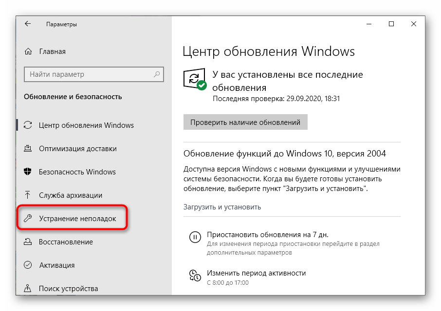 В нем через левую панель перейдите к категории «Устранение неполадок».