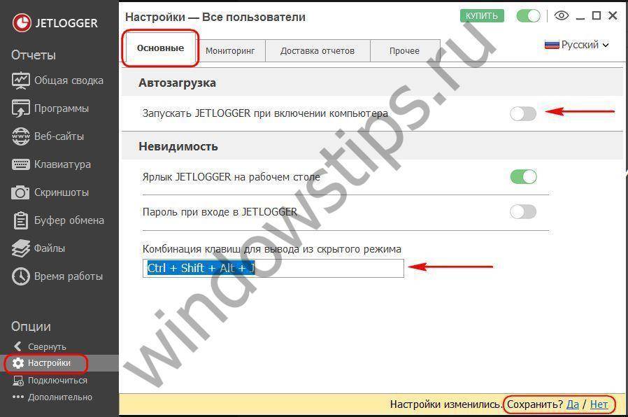 Запустив Jetlogger, сначала обратимся к разделу «Настройки». В первой вкладке «Основные» можем назначить автозапуск, если эта функция не была включена на этапе установки, и сменить предустановленные горячие клавиши открытия программы. Любое внесение изменений в настройки необходимо дополнительно подтверждать опцией сохранения внизу окна.