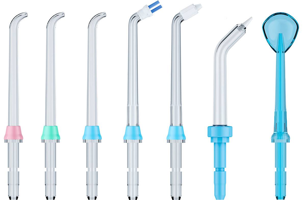 Как правило, в комплектации любого ирригатора есть несколько стандартных индивидуальных насадок в виде распылителя, которые предназначены для санации здоровой полости рта, без проблем с зубами или деснами.