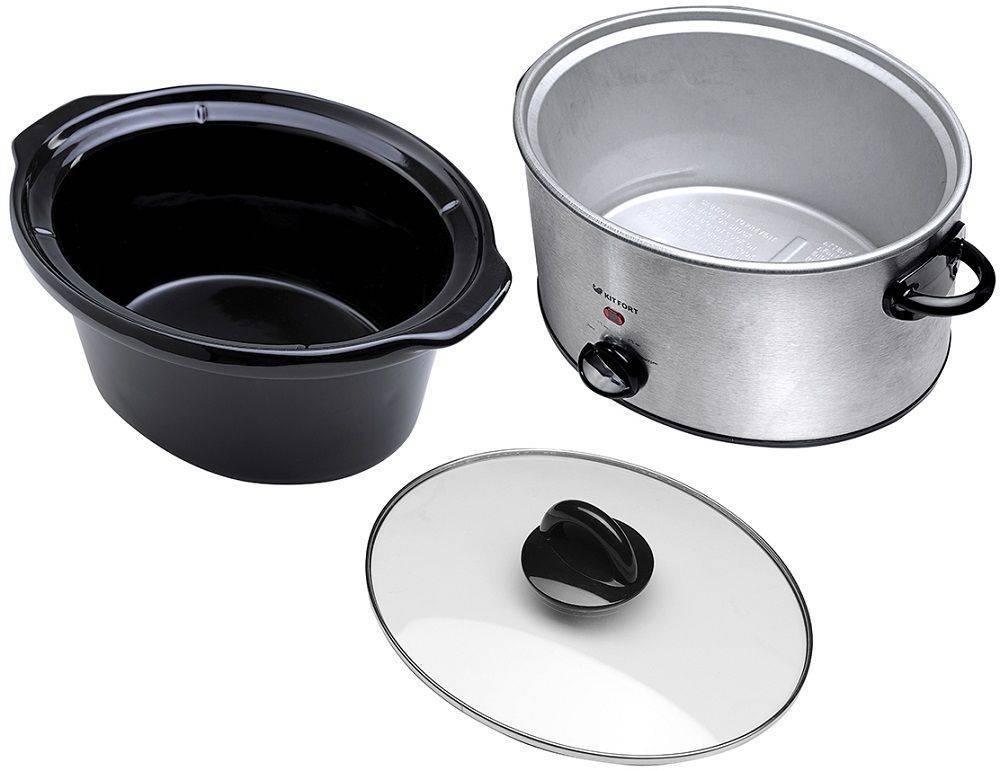 Медленноварка, или долговарка. В таких конструкциях максимальная температура всего 80 °C. Принцип готовки напоминает томление в русской печи. Пища сохраняет массу полезных веществ, но готовится очень долго, поэтому в качестве замены «скоростной» СВЧ-печки рассматривать такой прибор не стоит, конечно же, если у вас нет массы свободного времени.