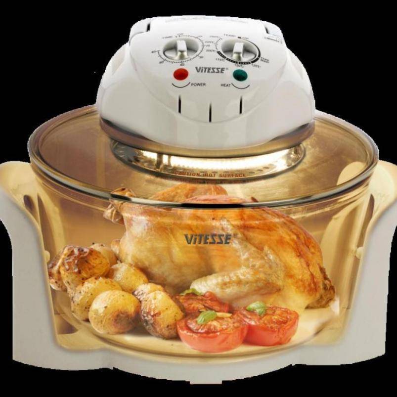 Аэрогриль, он же конвекционная печь, способен заменить собой практически все кухонные приборы. В нём можно приготовить любое блюдо, использовать для копчения мяса или рыбы, сушки зелени, грибов и фруктов. Его можно использовать как стерилизатор при консервировании, как мангал для готовки шашлыка, как духовку для выпечки бисквита. Устройство представляет собой стеклянную ёмкость, установленную на подставке и закрытую крышкой.