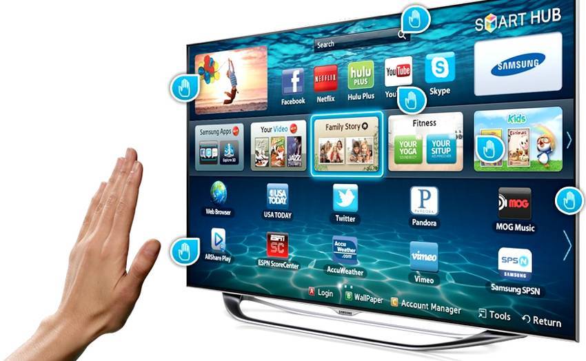 Еще одно преимущество смарт-телевизоров, – это возможность управления экраном как пультом ДУ, так и голосом, жестами