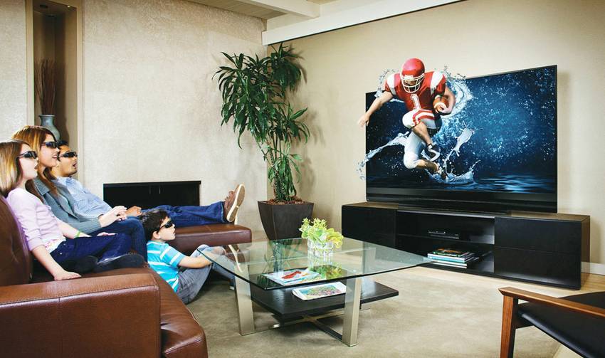 - Минус – картинка делится на две части, то есть изначально должно быть высокое разрешение, кроме того, при отклонении головы эффект может снижаться. В кинотеатрах за счет большого экрана это не заметно, а вот дома рекомендуется сидеть прямо перед ТВ.