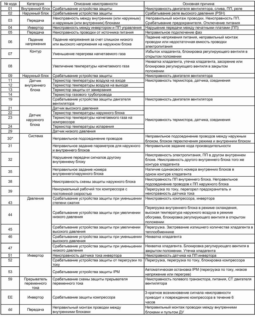 | Е | 02 | Не корректные данные поступают от дистанционного пульта |