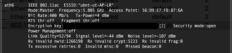 First, you need to determine which VAP interface your wireless client is connecting to. You can ssh into the problematic AP and issue the command iwconfig.