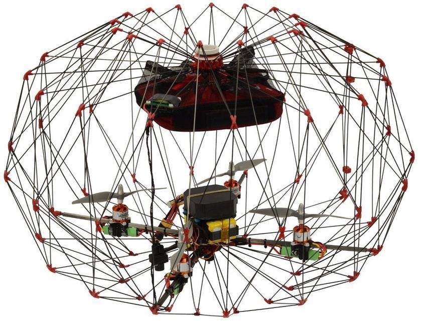 На паука-сенокосца похожа разработка ученых из Лаборатории интеллектуальных систем Федеральной политехнической школы Лозанны (EPFL). Научных работников вдохновило оригами. Квадрокоптер окружен складной сеткой из углеродного волокна.