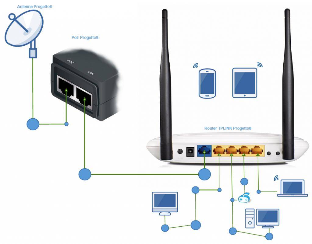 | Обеспечивает беспроводное подключение к сети | Организует сеть и связывает беспроводную, проводную и глобальную по протоколу NAT |