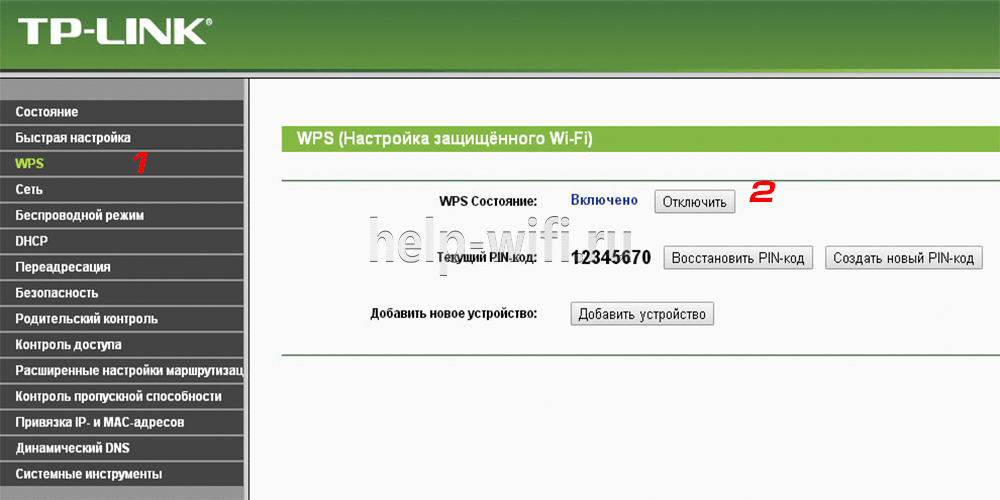 В личном кабинете можно управлять (включать и отключать) WPS и настраивать технологию. Рассмотрим возможные параметры для изменения, а также как узнать текущий код для вашего маршрутизатора, если его нет на этикетке на нижней панели девайса или если вы его ранее меняли.