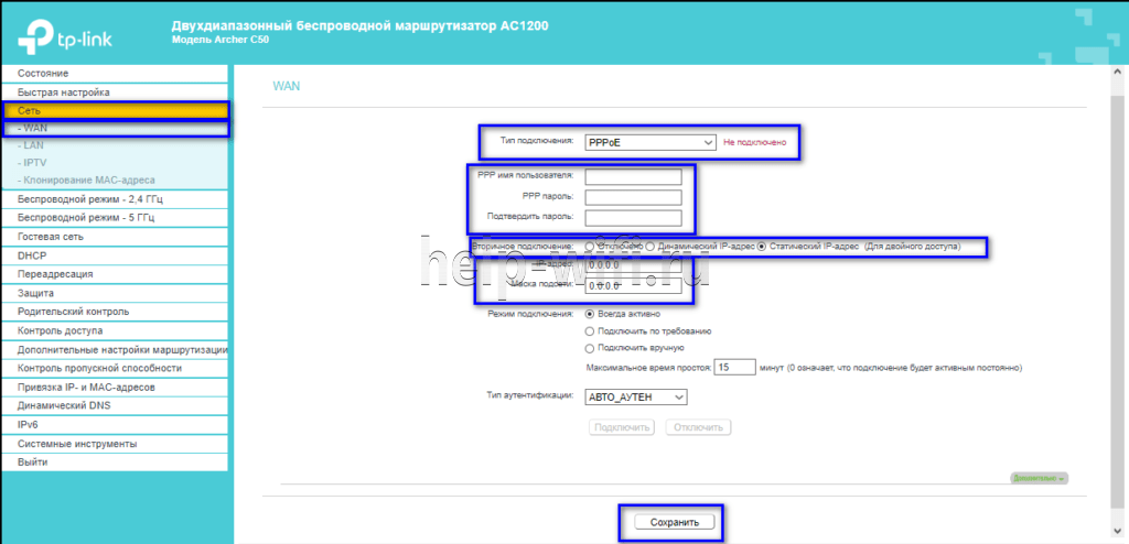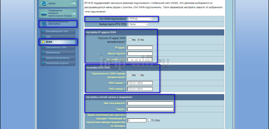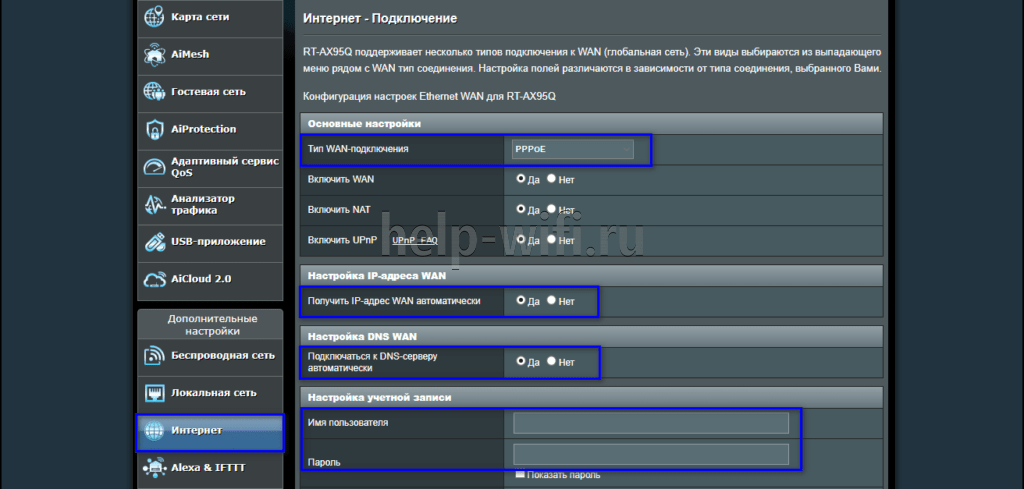 Для доступа к Сети через протокол PPPoE нужен ввод учетных данных и имени поставщика услуг.