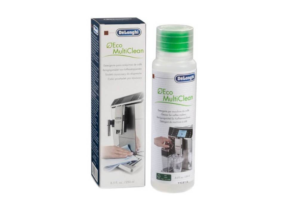 Еще один жидкий вариант для промывки автокапучинатора от осадка. Такое средство для чистки кофемашины DeLonghi содержит 250 мл вещества. Оно используется для удаления жировых и молочных остатков, для декальцинации солевых отложений. Стоимость: 2190 рублей.