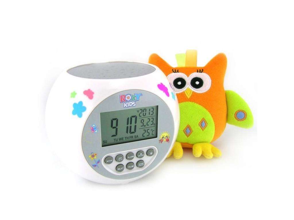 ROXY-KIDS Olly с совой (R-AC299) — выполнен в форме яйца, рядом с которым располагается плюшевая сова с большими глазами. Прибор обладает десятью встроенными мелодиями и тремя типами громкости звука. Проектор предполагает возможность подключения к внешней колонке. На корпусе находится дисплей с подсветкой, отображающий время, дату, температуру помещения, а также на нем можно настроить будильник. Сова изготовлена из ткани различной структуры с пищащей деталью, что полезно для развития тактильных навыков. К конструкции можно подключить съемный внешний диск с дополнительными мелодиями и сказками.