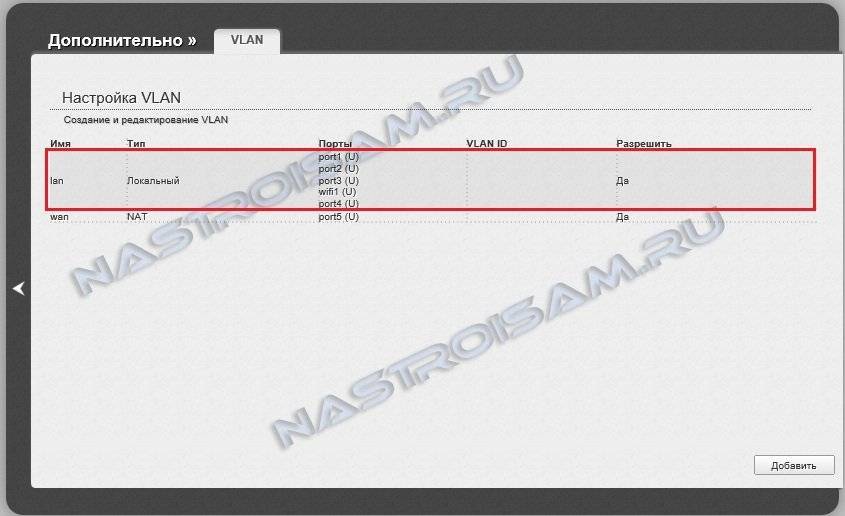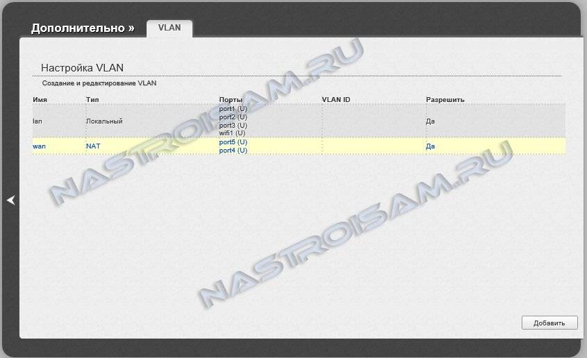 Видим таблицу создания и редактирования VLAN: