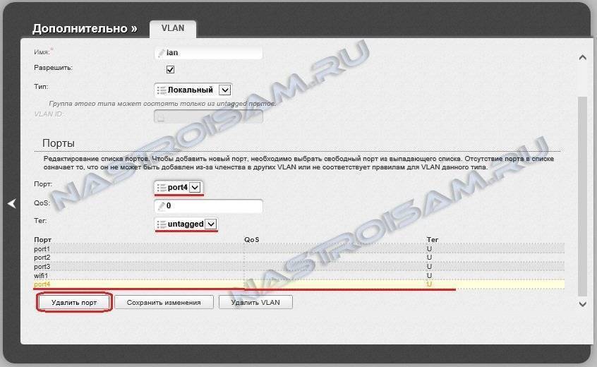 Внизу, в поле Порт выбираем любой порт. Вообще, обычно под приставку занимается 4-й порт. Его мы и выберем. Нажимаем кнопку Удалить порт, а затем Сохранить изменения