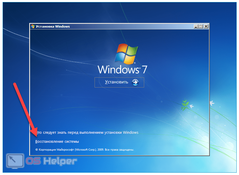- Загружаем ПК с помощью дистрибутива, который записан на флешке или на внешнем жёстком диске (комбинацию запуска Boot Menu для своей материнской платы или ноутбука можно увидеть при запуске компьютера). Выбрав язык, нажимаем на «Восстановление системы» в правом нижнем углу, либо прожимаем комбинацию Shift + F10 .