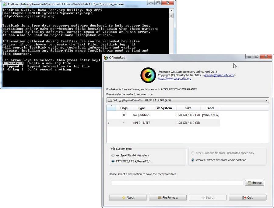 Еще один способ эффективного поиска и восстановления раздела диска из RAW — бесплатная программа TestDisk. Она сложнее в использовании, чем предыдущий вариант, но иногда оказывается более эффективной.