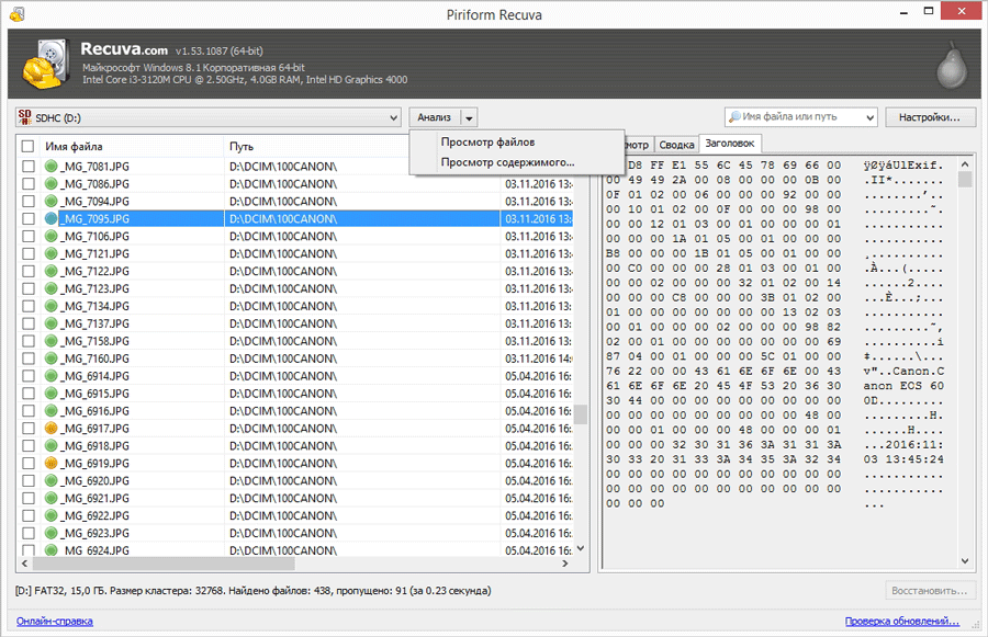Это также довольно длительный процесс, но он должен закончиться быстрее, чем первичное сканирование. В результате появится окошко со списком найденных файлов.