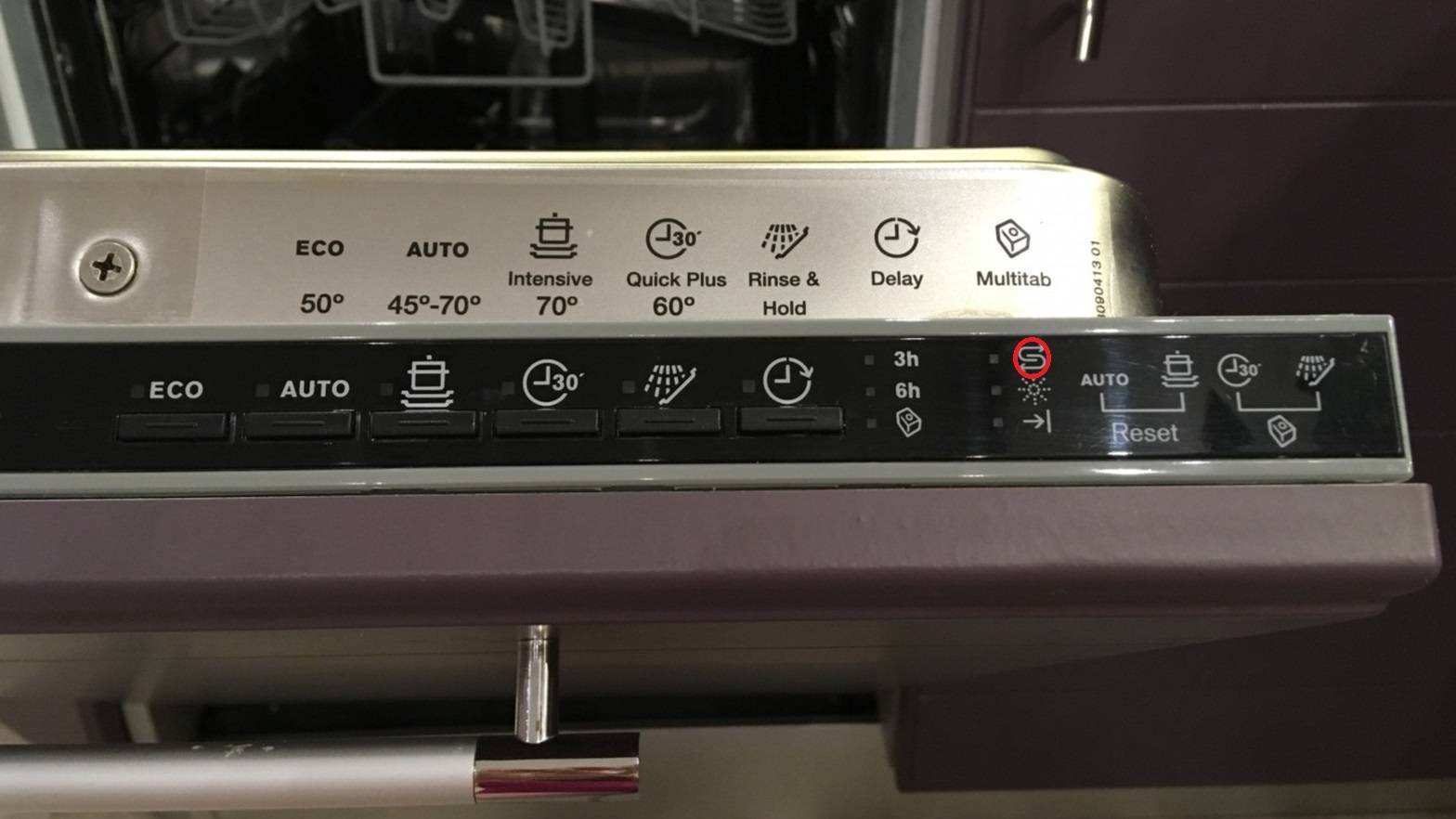 Практически все современные посудомоечные машины имеют индикатор, который показывает, когда пора насыпать NaCl. Этот индикатор связан с датчиком, расположенным в резервуаре ионообменника. Как только датчик начинает чувствовать, что натрия становится мало, он посылает сигнал на индикатор и тот загорается красным светом. У большинства посудомоечных машин (Электролюкс, Бош, Hansa, Gorenje и пр.) индикатор обозначен символом в форме буквы «S» и снабжен красной лампочкой.