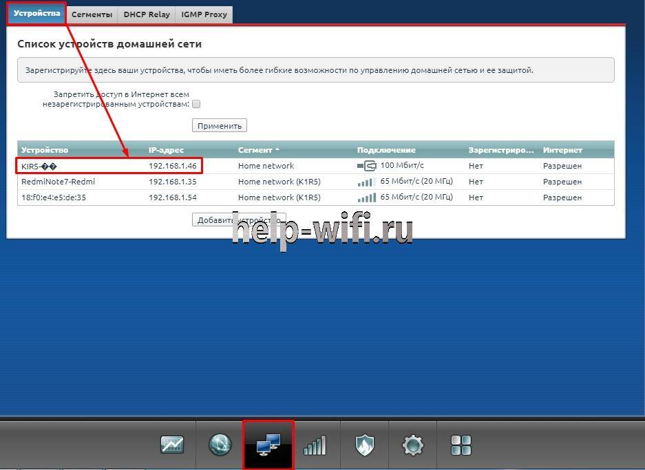 В новой прошивке, установленной на последних моделях модема, все выглядит практически так же, только немного поменялись названия. Для начала перейдите в «Мои сети и Wi-Fi», затем выберите «Список устройств», проверьте, что нужное устройство находится в зарегистрированных. Для перехода к этапу регистрации щелкните по нужному девайсу, напишите имя и нажмите на «Зарегистрировать».