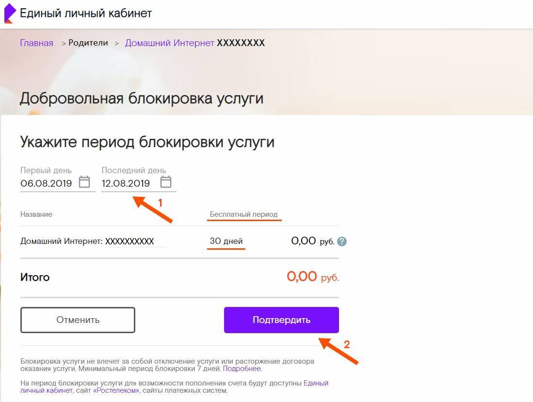 Если вы передумали использовать добровольную блокировку от Ростелекома, то снять ее можно как до момента активации, так и в любое другое время, не обязательно ждать окончания периода приостановки обслуживания. Доступ к сервису станет доступен уже через 1 час.
