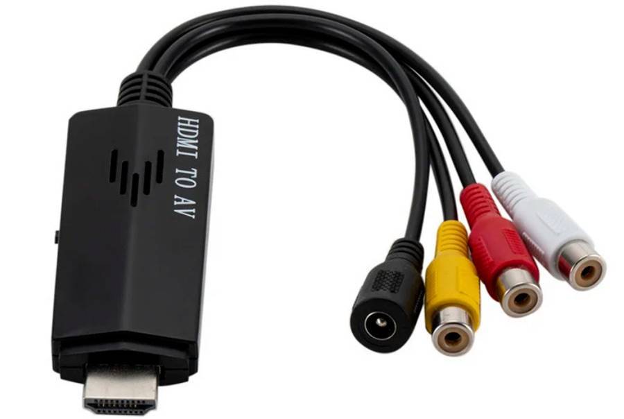Большинство старых телевизоров зачастую способны принимать исключительно RCA-сигнал. Этот кабель состоит из трёх разноцветных проводов: два для аудио, один для видео. В народе их ещё называют «тюльпанами». Но для того чтобы выполнить такое подключение, необходимо дополнительно приобрести специальный переходник. Это может быть HDMI → RCA или VGA → RCA.