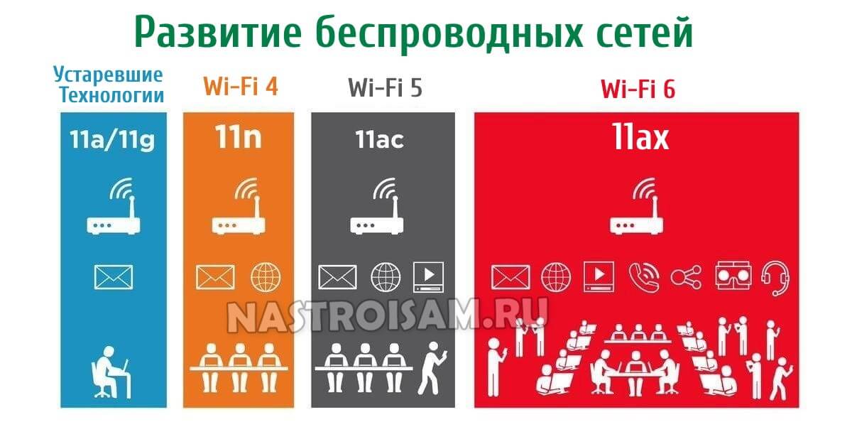 Давайте внимательно посмотрим на картинку ниже. Здесь представлена эволюция стандартов Вай-Фай в том виде, в котором это происходило на практике: